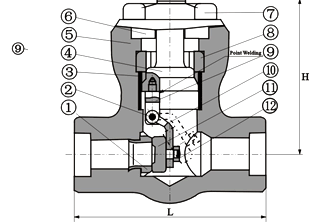 | 6 | 阀盖 | A105 | A182F22 | A182F304(L) | A182F316(L) |